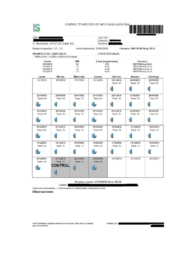 Y así ad nauseam hasta el fin de los tiempos; en la Autonotaifa Balear este sarao se ejecuta en los PAC, electrónicamente el/los hematólogos recibían en su laboratorio el factor de coagulación del paciente, y devolvían al PAC las hojas-calendario con las dosis del hemorrágico invento. En condiciones normales toda la comedia no debe ocuparle a nadie más de 1/2 hora de su tiempo de vida.