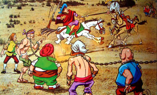 Empezamos por el final a comentar el episodio de Los Galeotes, del Quijote de Cervantes; muy mal final, por cierto, ya que no es costumbre entre bellacos y follones la de ser agradecidos, como enseguida se percataron el Buen Caballero de la Triste Figura y su fiel escudero Sancho.